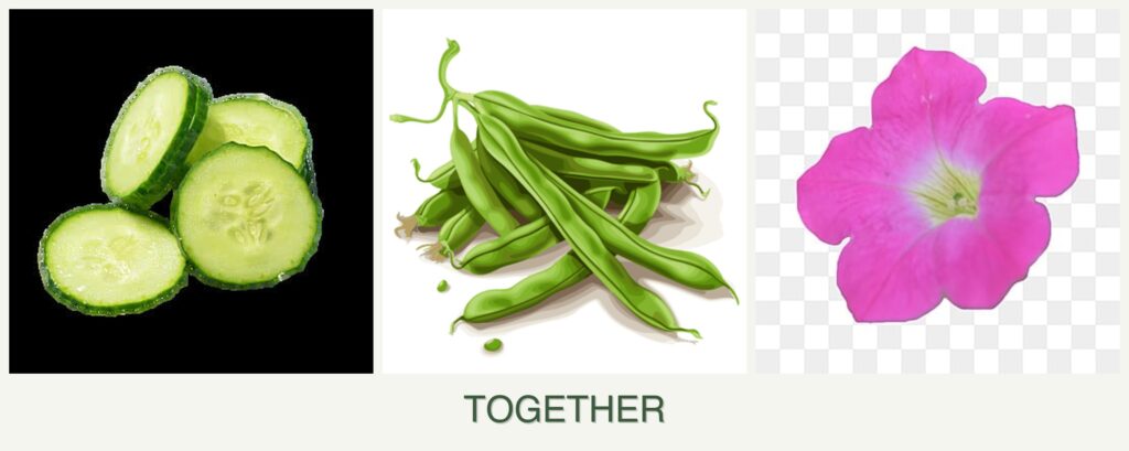 Planting cucumbers, beans, and petunias together offers several benefits: