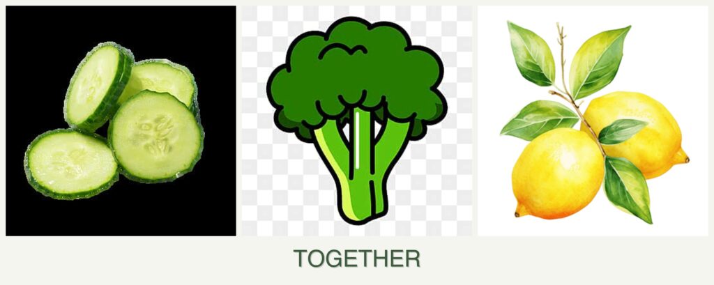 While cucumbers, broccoli, and lemons may not be ideal companions, pairing cucumbers and broccoli can offer some benefits: