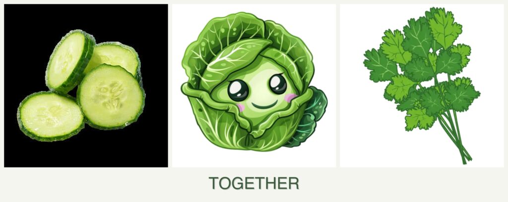 Growth Requirements: Cucumbers thrive in warm weather and need full sun, while cabbage prefers cooler temperatures and can tolerate partial shade. Cilantro grows well in both conditions, making it a versatile companion.