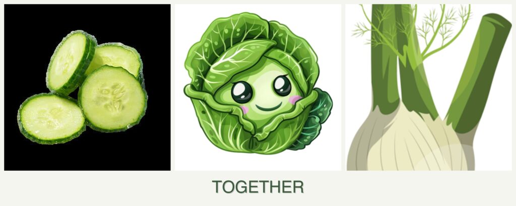 Different Watering Needs: While cucumbers and cabbage align, fennel’s needs may differ slightly.