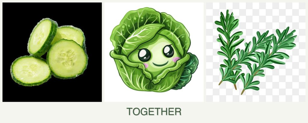 - Pest Control: Cabbage attracts pests like cabbage worms, which do not affect rosemary or cucumbers. However, rosemary’s strong aroma can repel certain pests, which might benefit cabbage.