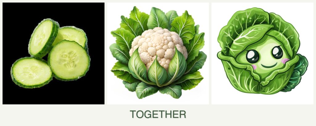 Growth Requirements: Cucumbers need full sun, while cauliflower and cabbage can tolerate partial shade. This means careful placement in the garden is necessary to ensure each plant receives the optimal amount of sunlight.