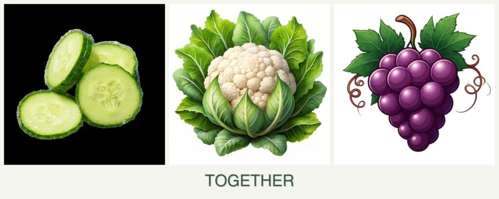 Can you plant cucumbers, cauliflower and grapes together?