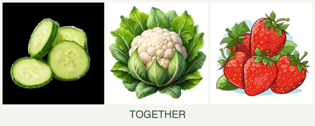 Can you plant cucumbers, cauliflower and strawberries together?