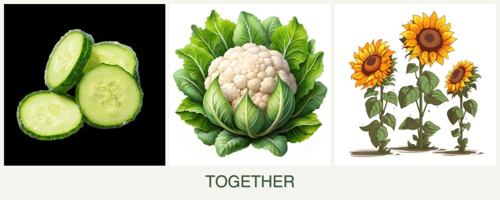 Can you plant cucumbers, cauliflower and sunflowers together?