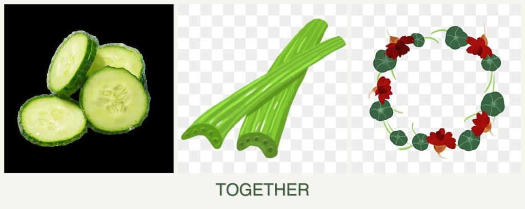 Growth Requirements: Cucumbers and celery thrive in full sun and require consistent watering. Nasturtiums can tolerate partial shade, making them flexible companions.