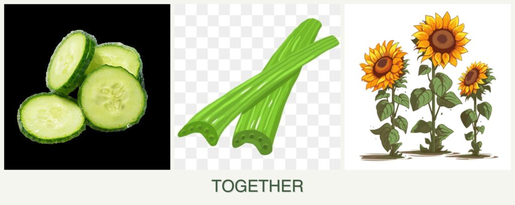 - Pest Repellent Properties: Sunflowers attract pollinators and beneficial insects, which can reduce pest pressure on cucumbers and celery.