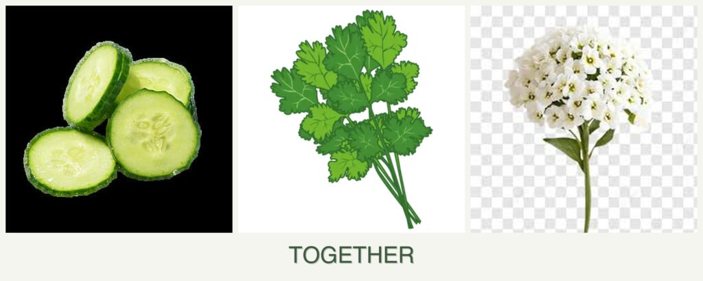 Planting cucumbers, cilantro, and alyssum together offers several benefits: