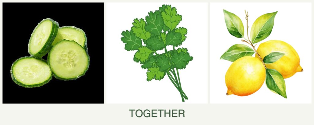 - Growth Requirements: Cucumbers and lemons both love the sun, but cilantro needs some shade in hot climates.