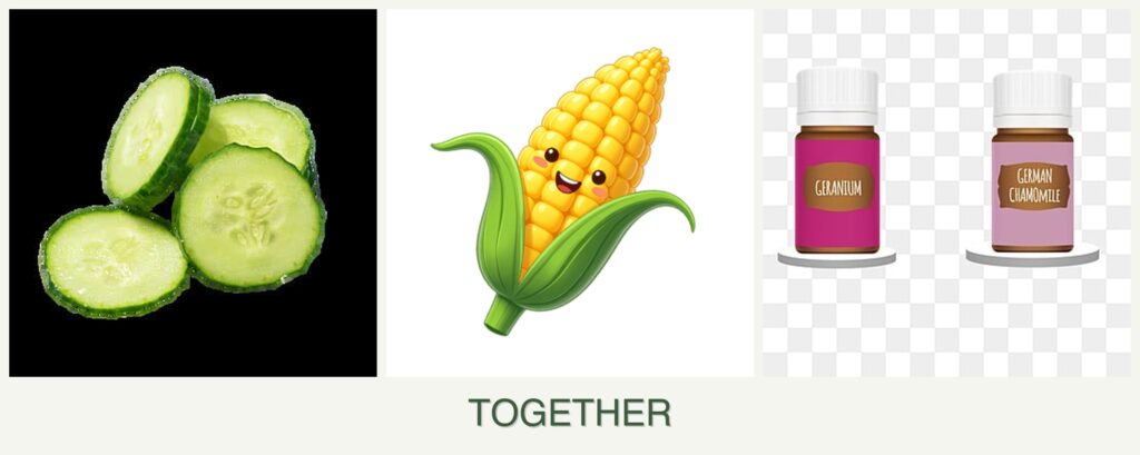 - Growth Requirements: Corn and cucumbers share similar sunlight and water needs, while geraniums require different soil conditions.