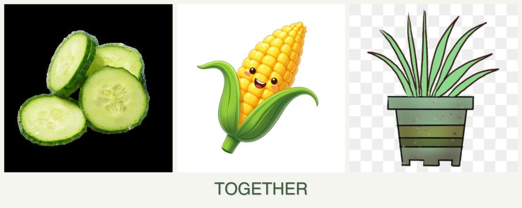 - Timing: Plant corn first, followed by cucumbers and lemongrass once the corn is established.