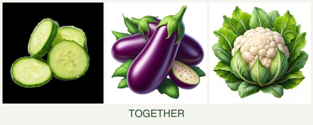 - Growth Requirements: Cucumbers thrive in warm temperatures and need consistent moisture, while cauliflower prefers cooler conditions. Eggplants also require warmth but have different nutrient needs.