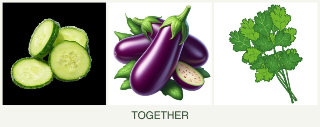 - Timing: Plant cucumbers and eggplants after the last frost, and sow cilantro seeds in early spring or late summer for best results.