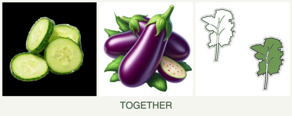 Planting cucumbers, eggplant, and kale together can offer several advantages: