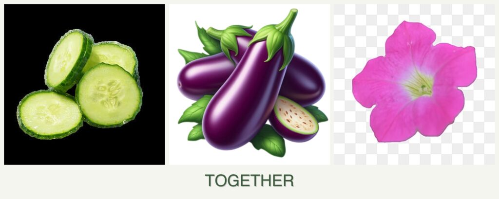 Can you plant cucumbers, eggplant and petunias together?