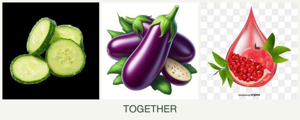 While cucumbers and eggplants can be planted together, adding pomegranates complicates the setup. However, cucumbers and eggplants can benefit from: