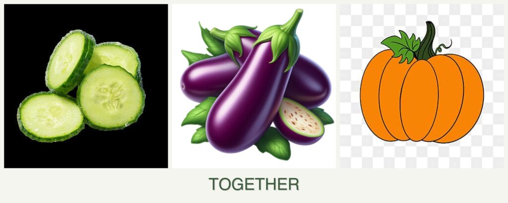 Planting cucumbers, eggplant, and pumpkin together can offer several advantages: