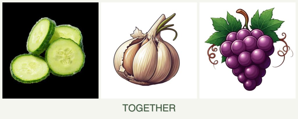 - Pest Control: Garlic acts as a natural pest deterrent, which can benefit both cucumbers and grapes.