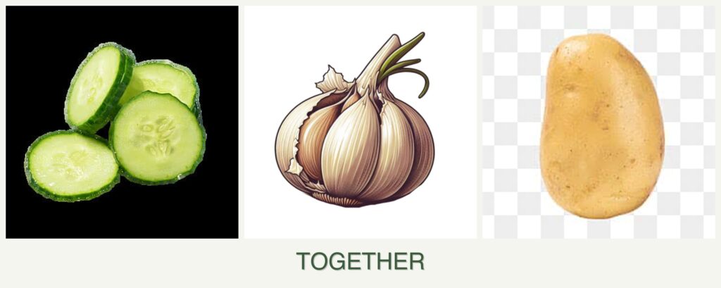 Growth Requirements: Cucumbers thrive in warm weather and require a lot of sunlight, while garlic prefers cooler temperatures. Potatoes need well-drained, loose soil, which may not suit the needs of cucumbers or garlic.
