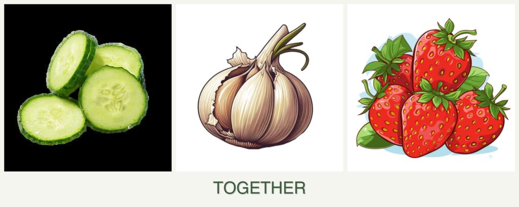 Pest Repellent Properties: Garlic’s natural ability to repel pests can protect both cucumbers and strawberries, reducing the need for chemical pesticides.