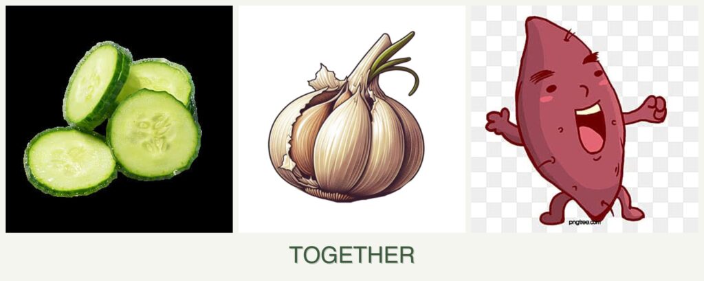 Pest Repellent Properties: Garlic acts as a natural pest deterrent, protecting cucumbers and sweet potatoes from harmful insects.