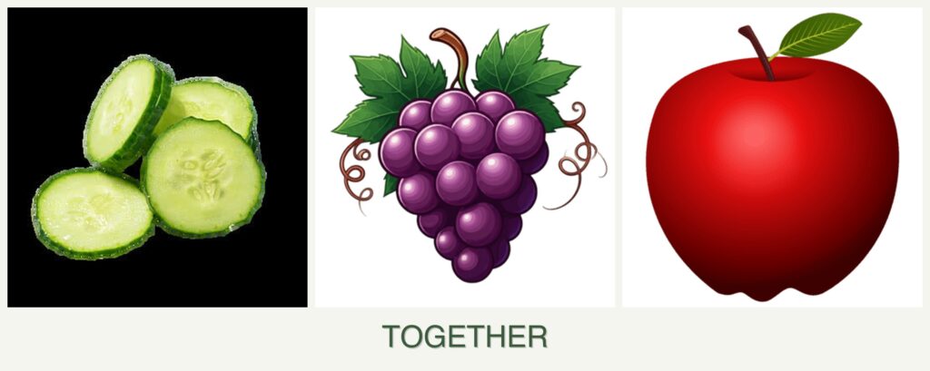 - Growth Requirements: Cucumbers thrive in warm, sunny conditions and require ample water. Grapes also prefer full sun and well-drained soil, while apples need a sunny location with good air circulation. Their similar sunlight needs make them compatible in terms of light requirements.