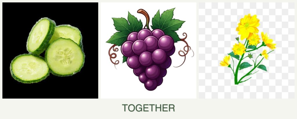 Planting cucumbers, grapes, and calendula together offers several advantages:
