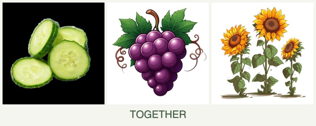 Can you plant cucumbers, grapes and sunflowers together?