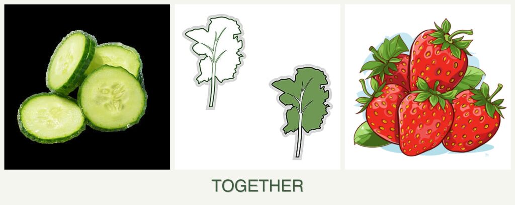 - Pollinator Attraction: Strawberries attract pollinators, which can benefit cucumbers’ fruit set.