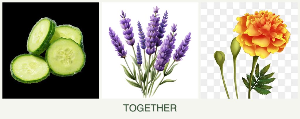 - Timing: Plant cucumbers after the last frost, and ensure lavender and marigolds are planted in well-drained soil.
