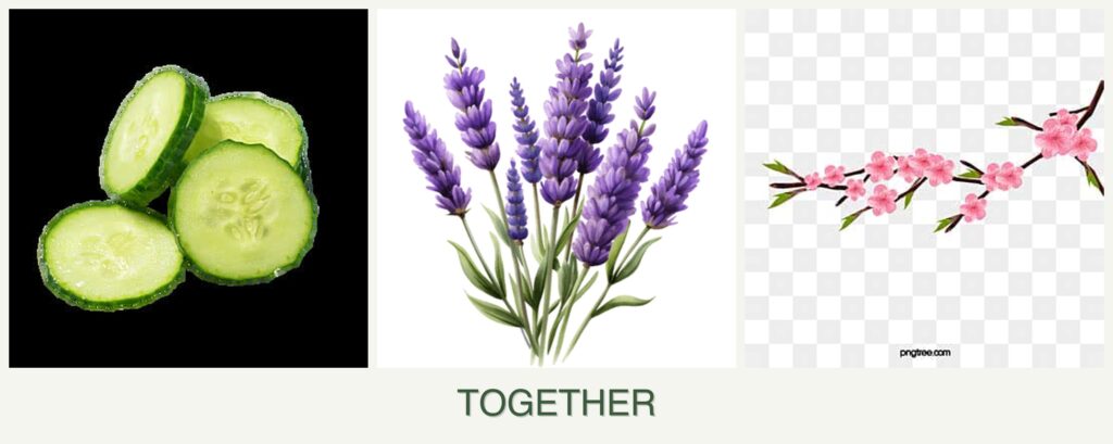 Growth Requirements: Cucumbers thrive in warm, moist environments, while lavender prefers dry, well-drained soil. Peaches, being fruit trees, have different nutrient and space requirements altogether.