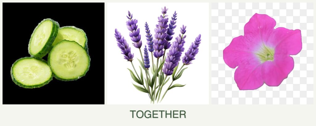 Planting cucumbers, lavender, and petunias together offers several benefits: