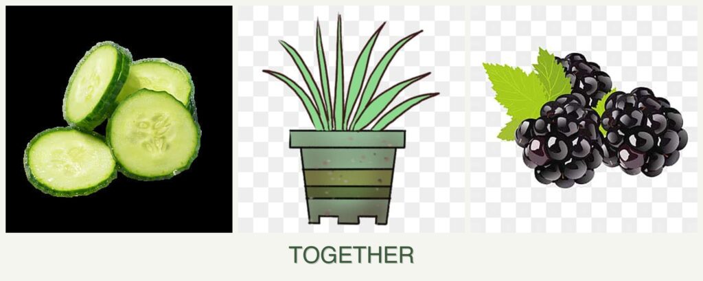 Pollinator Attraction: Flowers from companion plants can attract pollinators, aiding in the fruiting of cucumbers and blackberries.