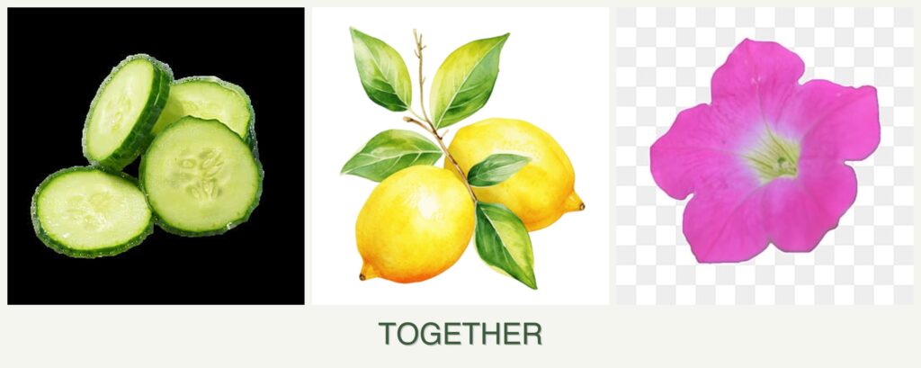 Pollinator Attraction: Petunias attract pollinators, which can benefit the fruiting of both cucumbers and lemons.