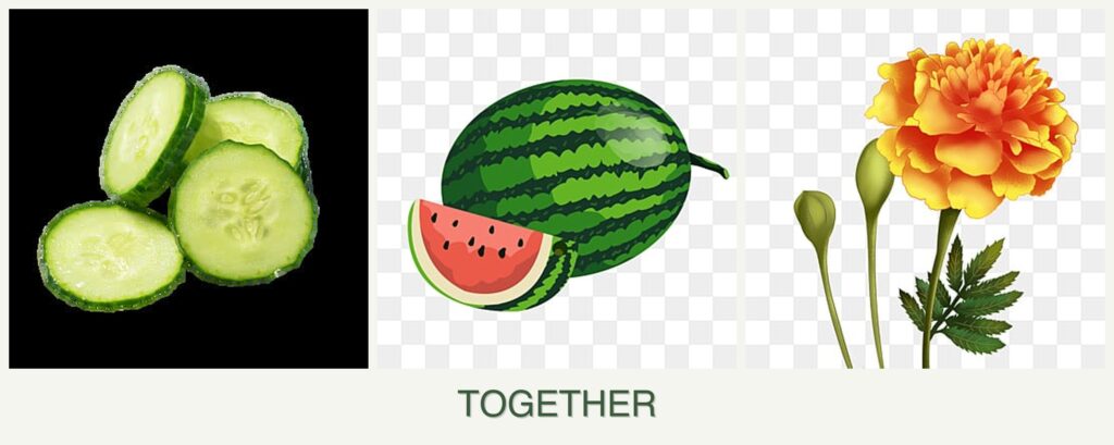 Planting cucumbers, melons, and marigolds together offers several benefits: