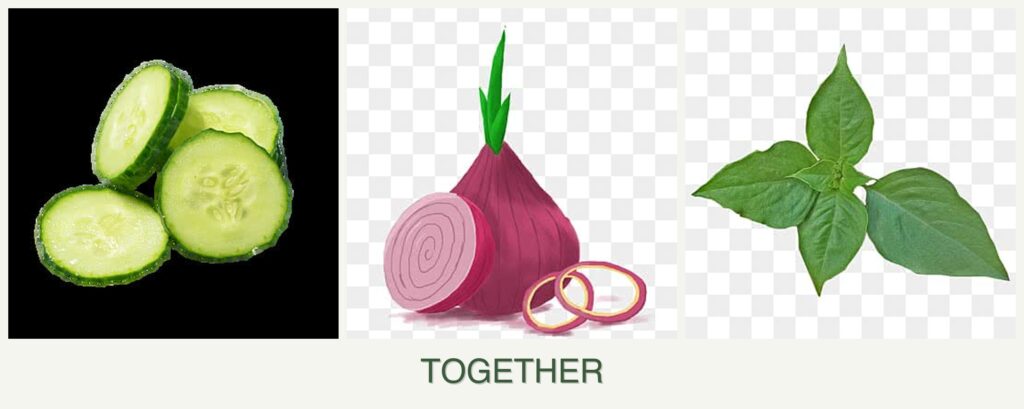 - Resource Competition: Cucumbers are heavy feeders and may compete with onions and basil for nutrients.