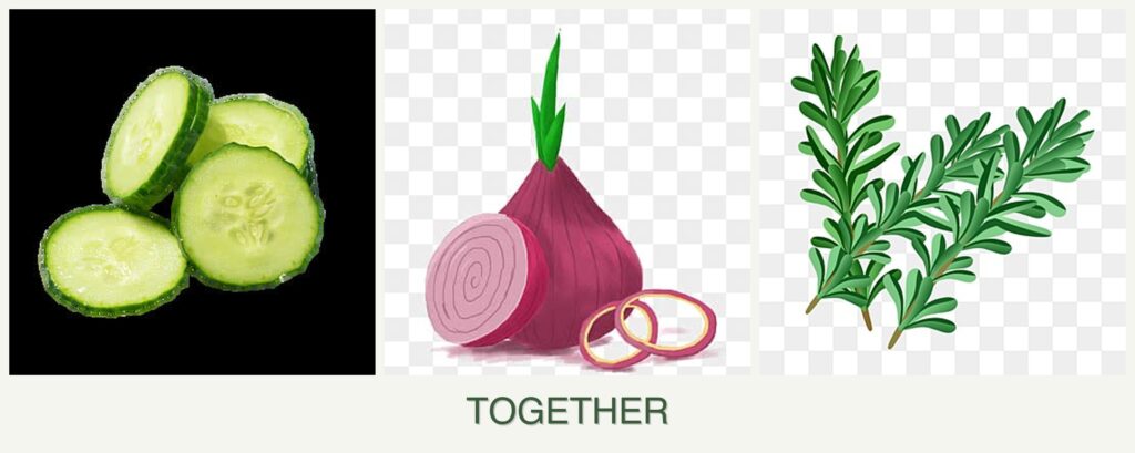 - Pest Control: Onions are known to repel certain pests that affect cucumbers, such as aphids. Rosemary, with its strong scent, can deter some insects.