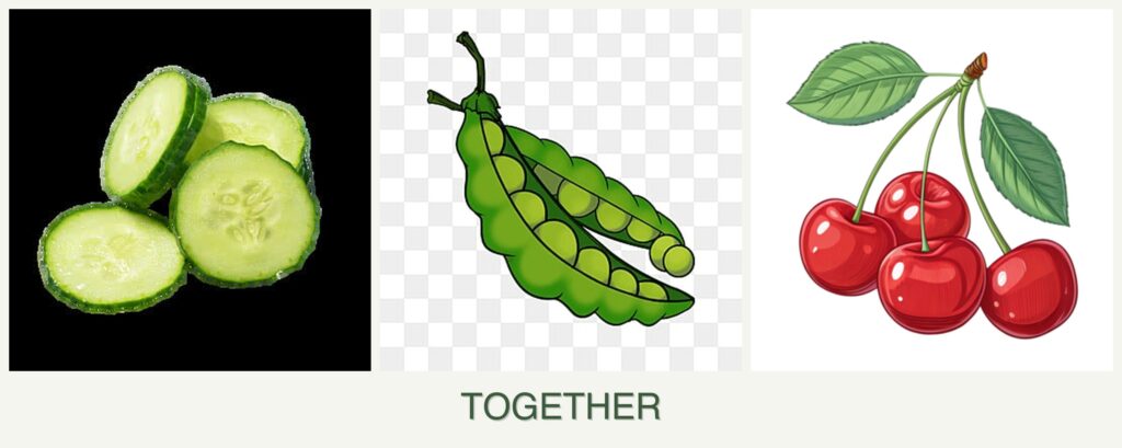 Can you plant cucumbers, peas and cherries together?
