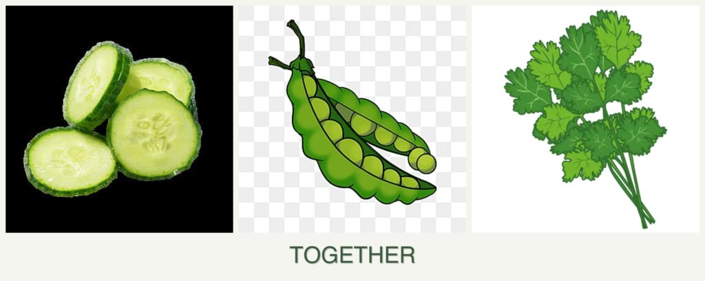 - Pest Control: Peas can attract beneficial insects, which may help control pests that affect cucumbers, while cilantro can deter certain pests with its strong aroma.