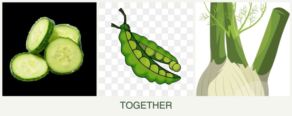 - Watering Needs: While cucumbers and peas have similar water requirements, fennel’s needs can vary slightly.