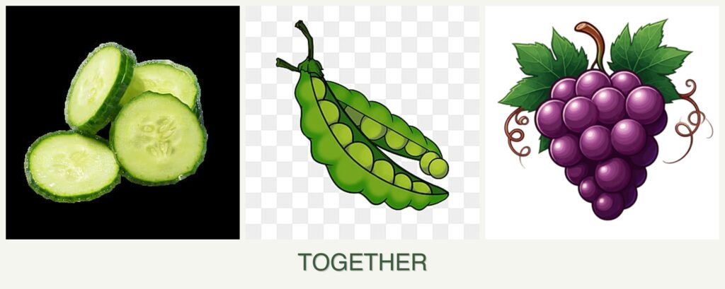 - Improved Flavor or Growth: The nitrogen-fixing ability of peas can enhance soil quality, benefiting the growth of cucumbers and grapes.