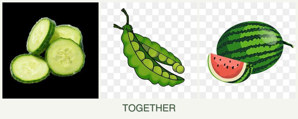 - Growth Requirements: Cucumbers and melons have similar sunlight and soil needs, while peas can tolerate cooler temperatures.