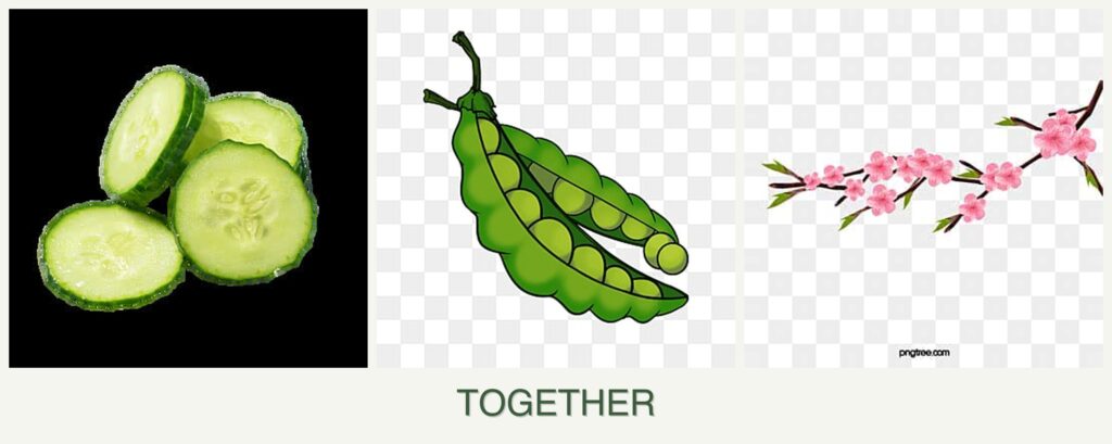 While cucumbers, peas, and peaches aren’t ideal companions, planting cucumbers and peas together can be beneficial: