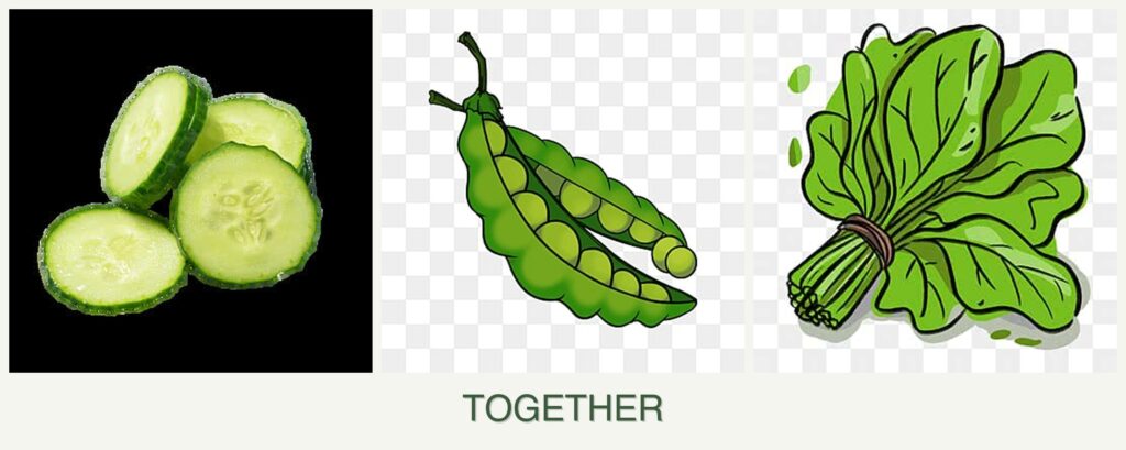 - Nutrient Needs: Peas fix nitrogen in the soil, benefiting nutrient-hungry cucumbers and spinach.