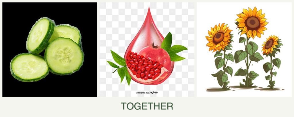 Can you plant cucumbers, pomegranates and sunflowers together?