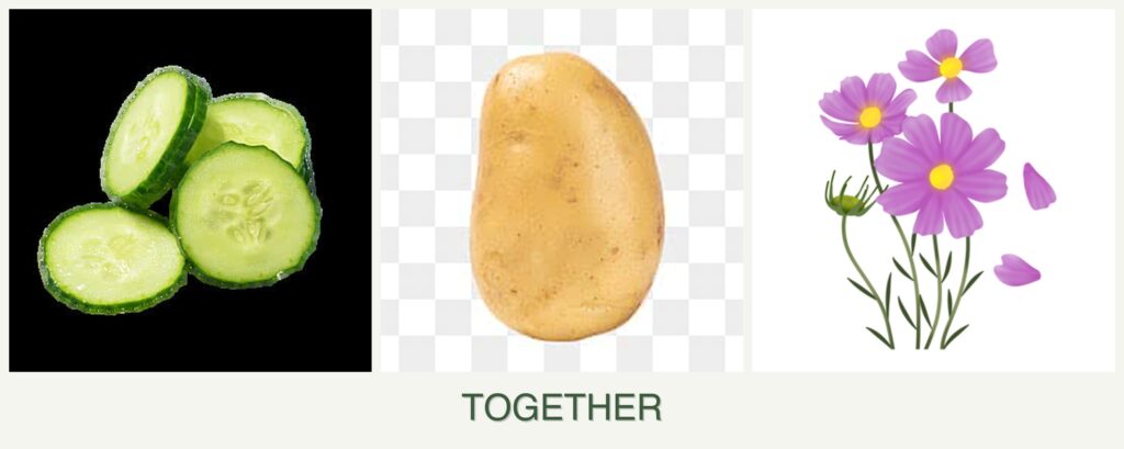 While cucumbers and potatoes aren’t compatible, cosmos can be a beneficial addition: