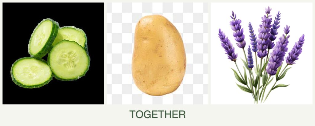 While cucumbers, potatoes, and lavender aren’t ideal companions, there are some benefits to consider if you manage their placement carefully: