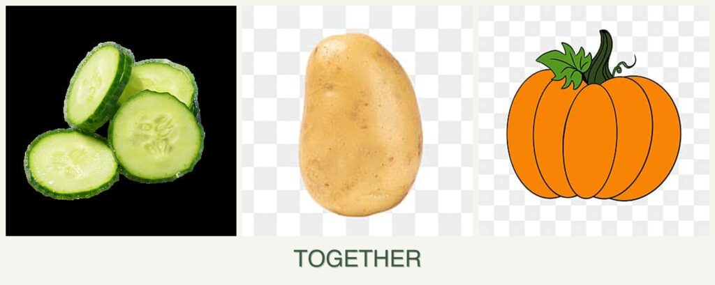 Growth Requirements: Cucumbers and pumpkins are both sprawling vines that require ample space and sunlight, whereas potatoes grow underground and need loose, well-draining soil. Their differing growth habits can lead to competition for space and sunlight.