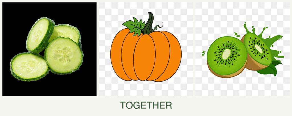 - Pest Control: Cucumbers and pumpkins can benefit from mutual pest deterrents, but kiwi does not contribute to this dynamic.