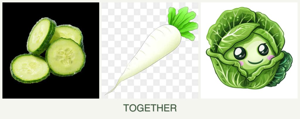 - Pest Repellent Properties: Cabbage can deter pests such as aphids and flea beetles, which may affect cucumbers and radishes.